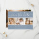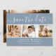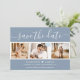 Elegant dusty blue wedding photo save the date card featuring a modern script font and a photo collage. Easily personalise this card with your images and wedding details including a wedding website if applicable.