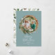 Modern minimal foliage wreath Merry Christmas script holiday 1 photo Christmas card. Hand painted eucalyptus, minimal foliage and modern rustic rattan wreath give this holiday card a luxurious feel. In classy greens, browns, grays and dusty blue.