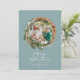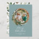 Modern dusty blue wreath Christmas script 1 photo Holiday Card