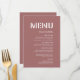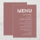 Elegant graceful dusty pink brandy rose simple minimalist wedding menu.