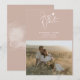 Announce your special day with these minimalist modern cards with a handwritten calligraphy script Save The Date against a dusty pink background. Easily customise your personal information and photo on the front and back to make it your own.
