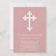 Customisable baptism invitation featuring a white cross on a dusty pink background.
