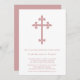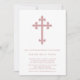 Customisable baptism invitation featuring a dusty pink cross on a clean white background.