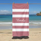 Personalized Modern Pink Dusty Rose Striped Name Beach Towel.