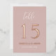 Modern Dusty Pink Wedding Table Number Rose Gold