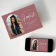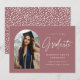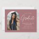 Trendy graduation announcement featuring the graduate's photo framed by a dusty rose arch with "Graduate" in a white handwritten script. Personalise the front of the arch graduation announcement card by adding the graduate's name, graduation year, school name, and future plans. The photo graduation announcement reverses to display a dusty rose and white dotted pattern. The announcement is suitable for both high school and college graduates.