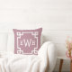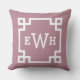 Stylish and modern square accent pillow design features a Greek key geometric border frame design and monogram that can be personalised. Dusty rose pink / mauve and white colours. Background colour can be modified.