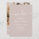 Modern dusty rose script photo initials wedding, add 4 of your favourite couple photo , a simple, minimalist and chic wedding invitation, add your initials at the back.