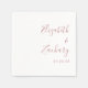 These simple, modern wedding napkins feature dusty rose text aligned to the right margin on a white background. Add the names of the bride and groom in stylish handwriting calligraphy.