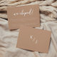 Modern Earthy Beige Script Wedding Elopement Announcement. Personalise with bride and groom initials on the back, and your elopement message for family and friends on the front.