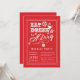 Modern & Trendy Christmas Eat Drink Be Merry Holiday Invitation featuring typography, snowflakes, a martini glass with a red & white candy cane set on a classy classic red background. Stylish & chic christmas invitation for all your festive winter get togethers... office party, company party, cocktail party celebration & dinner party.