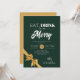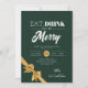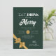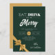 Modern Eat, Drink Be Merry Xmas Gold Ribbon Green Invitation
