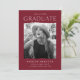 Invite guests to celebrate your graduate's exciting milestone with these modern photo graduation party invites! The design features the graduation year at the top with "Graduate" shown below in white modern lettering. The graduate's photo is displayed inside of a burgundy frame with torn edges. Personalise the design by adding the graduate's name, school name, and future plans (college, military, career choice, etc.). The invite reverses to display your graduation party details.