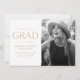Celebrate your graduate's exciting milestone with these unique photo graduation announcements! The design features "congrats to our grad" in gold modern lettering with a white background with a torn edge bordering the graduate's senior photo. Personalise the announcement by adding the graduate's name, school name, and graduation year. The card reverses to display a solid white background with space for additional photos and text.