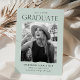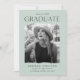 Celebrate your graduate's exciting milestone with these modern photo graduation announcements! The design features the graduation year at the top with "Graduate" shown below in black modern lettering. The graduate's photo is displayed inside of a mint green frame with torn edges. Personalise the announcement by adding the graduate's name, school name, and future plans (college, military, career choice, etc.). The card reverses to display a solid mint green background.