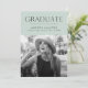 Celebrate your graduate's exciting milestone with these modern photo graduation announcements! The design features "Graduate" at the top in black modern lettering with a mint-colored torn edge bordering the graduate's senior photo. Personalize the announcement by adding the graduate's name, school name, and graduation year. The card reverses to display a mint green background.