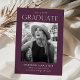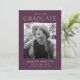 Celebrate your graduate's exciting milestone with these modern photo graduation announcements! The design features the graduation year at the top with "Graduate" shown below in white modern lettering. The graduate's photo is displayed inside of a purple frame with torn edges. Personalise the announcement by adding the graduate's name, school name, and future plans (college, military, career choice, etc.). The card reverses to display a textured purple and white striped pattern.