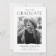 Celebrate your graduate's exciting milestone with these modern photo graduation announcements! The design features the graduation year at the top with "Graduate" shown below in black modern lettering. The graduate's photo is displayed inside of a white frame with torn edges. Personalise the announcement by adding the graduate's name, school name, and future plans (college, military, career choice, etc.). The card reverses to display a textured white and black striped pattern.