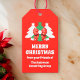 Simple and elegant holiday greeting card or gift tag for your business that your customers and clients can use as a paper tree ornament. The front features a modern watercolor of christmas trees in sage green, red, and "Merry Christmas" in a stylish script. On the back, upload your logo, input your website address to create a QR code that your customers can scan to easily connect to your online platforms, and personalise a message to your customers.