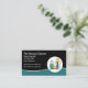 This unique editable cleaning service business card design template is created with a cleaning professional character holding a mop and includes text templates you can edit and customise with your own maid or housekeeper information.