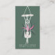 Modern editable boho house plant home staging interior decor business card featuring a cute, boho illustration of a green house plant in a pot with wood and macramé strings on a retro dark green and pink . ll the colours are editable so you can create you own colour palette, just click to customise further.