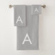 Editable white monogram on silver grey background Bath Towel Set..