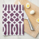 Modern Eggplant Purple and White Trellis Pattern Tea Towel