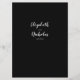 Modern Elegance Black and White Wedding Reception Program and Menu features the couples’ names in beautiful calligraphy and date in a traditional serif font on one side. The reverse side features a minimal black border with order of reception events, speakers and menu descriptions. Personalise with your wedding day details. This design is available in a variety of formats and accompanying wedding event products.