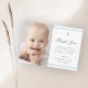 The classic stripe baptism thank you card is a modern, clean postcard featuring soft blue stripes and a cross with photo on the front. The back is a mailable postcard. Grey customisable type allows you to change all of the information on the card to your liking. Perfect for a little boy's baptism.