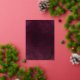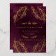 Elegant wedding save the date card design featuring real gold foil design with botanical elements on a dark burgundy red background