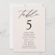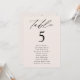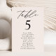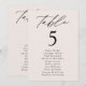 Elegant wedding seating chart featuring "table" displayed in black calligraphy script with the table number and guest names shown below on a cream background. The design repeats on the back. To order the table number seating chart, edit each card with the table number and guest names and add it to your cart. Designed to coordinate with our Modern Elegance wedding collection.