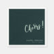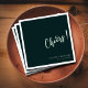 Celebrate in style with these Dark Green Hand Lettered Cheers Wedding Napkins! Featuring a modern design with a charming hand-written "Cheers" on a rich forest green background, these napkins add a touch of elegance to your wedding reception. Made with high-quality, absorbent paper for a comfortable guest experience. Personalise them with your names and wedding date for a lasting touch!