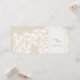 This wedding invitations features a modern, elegant Fleur de Lis design in white on an ecru background. Add your names and wedding date to the right on both the front and back. Fill in the template with your wedding information on the back. Click "customise it" to make changes to the font and text placement.