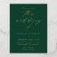 Minimalist, modern wedding invitation postcard featuring your wedding details with "the wedding of" in an elegant gold foil calligraphy script. The dark green background can be changed to a colour of your choice. The foil wedding invitation postcard reverses to display your return address and wedding details. Designed to coordinate with our Modern Elegance wedding collection.
