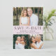 Announce your wedding date with this stylish, modern photo save the date card. The design features three of your favourite engagement photos with "Save the Date" in black serif and script fonts against a light purple background (or colour of your choice). Personalise the minimalist save the date announcements by adding your names, date and wedding location. The card reverses to a solid light purple background. The simple save the date announcement is perfect for any wedding theme.