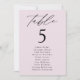 Elegant wedding seating chart featuring "table" displayed in black calligraphy script with the table number and guest names shown below on a lavender purple background. The design repeats on the back. To order the table number seating chart, edit each card with the table number and guest names and add it to your cart. Designed to coordinate with our Modern Elegance wedding collection.
