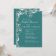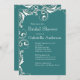 Our beautiful teal green bridal shower invitation is the perfect start to your spring bridal shower, summer bridal shower, fall bridal shower or winter bridal shower that your bride & guest will love. Our elegant bridal shower invitations features a vintage white floral flourish set on a teal blue background and features a matching back! Visit our shop for additional colour choices in this wedding shower invitation.