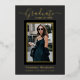 Beautifully elegant 1 photo graduation announcement cards. Featuring modern text with calligraphy script in your choice of gold, silver or rose foil. Your photo is also thinly edged in a double foil trim. The design is complimented with a background in regal shades of dark platinum, grey and black. The back of the card offers a personalised announcement text space for that special graduate. To see more items like this, visit my store here at "www.Zazzle.com/LakeViewCardCo". Thanks