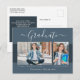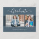 Beautiful 2 photo graduation announcement postcards. Featuring modern text with elegant calligraphy script in light grey on regal shades of dusty blue. To see more items like this, visit my store here at "www.Zazzle.com/LakeViewCardCo". Thanks
