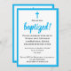 Elegant, modern ADULT BAPTISM invitation, showing I'M GETTING BAPTIZED plus customisable text. Main colorway is cyan blue. There is placeholder text on the reverse, which is based on 2 Corinthians 5:17 - new creation in Christ, and can be replaced with additional details of your celebration.