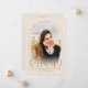 This beige simple minimalist arch graduation announcement features a delicate arch frame, 2 photo templates and elegant modern typography.