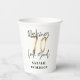 Modern 70th birthday typography black and gold effect birthday party cups. Modern script text stylish elegant design. Part of a collection.