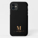 Modern Plain Elegant Black and Gold Monogrammed iPhone 11 Case.