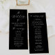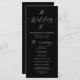 This elegant wedding program features the phrase "The Wedding of" in graceful white calligraphy against a bold black background, setting the tone for a sophisticated celebration. Customise it with your names, wedding date, and ceremony details in striking white lettering, providing guests with all the essential information. The program reverses to showcase the names of your bridal party, adding a personal touch to your wedding day. With its modern, simple, and timeless design, this program is perfect for both formal and casual weddings, making it a versatile choice for any season and an unforgettable part of your ceremony.