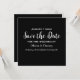 Modern Elegant Black and White Save The Date Invitation designed by Nisha Prabhu. Fully Customisable. Personalise with your details. The modern elegant black and white save the date invitation is the perfect choice for couples who want to set a stylish and sophisticated tone for their upcoming wedding. This invitation combines modern design elements with timeless elegance, creating a visually striking and memorable announcement. The invitation features a sleek black background, providing a dramatic and luxurious backdrop. The text is elegantly printed in a crisp white font, creating a beautiful contrast that catches the eye. The couple's names and the phrase "Save the Date" are prominently displayed, ensuring that the purpose of the invitation is clear. The design of the invitation is kept clean and simple. This minimalist approach adds to the modern aesthetic and allows the black and white colour scheme to take centre stage. The modern elegant black and white save the date invitation is a stylish and sophisticated choice for couples who want to make a statement with their wedding announcements. It sets the tone for a modern and elegant wedding celebration, leaving guests excited and eagerly anticipating the big day.