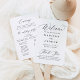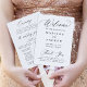 Keep your guests cool and informed with this stylish wedding program hand fan, featuring elegant black calligraphy on a crisp white background. Perfect for weddings in any season and suited for both formal and casual celebrations, this modern and practical design allows couples to personalise the front with their names, wedding date, location, and a heartfelt thank-you message in bold black lettering. The reverse side displays the ceremony details and the names of your bridal party, adding a thoughtful and personal touch. Combining functionality with timeless elegance, this wedding program hand fan is a beautiful way to enhance your guests’ experience while complementing the sophisticated aesthetic of your special day.