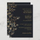 This elegant black and gold botanical floral wedding invitation can be personalised with your details in modern gold typography. Designed by Thisisnotme©