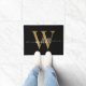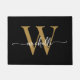 Modern Elegant Black Gold Monogram Name Script Doo Doormat