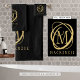 Modern Elegant Black Gold Stylish Monogram Bath Towel Set
