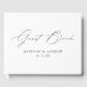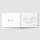 Elegant wedding guestbook featuring "Guest Book" displayed in a modern black calligraphy script on a white background. Personalise the front of the simple wedding guest book with your names and wedding date. The back of the guest book displays your monogram initials. Add your married name and wedding date to the spine of the guest book.